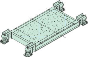 KSL – 0.75” to 3.0” Deflection Vibration isolation manufacturer shall furnish integral structural steel bases. Rectangular bases are preferred for all equipment. Centrifugal refrigeration machines and pump bases may be T or L shaped. Pump bases for split case pumps shall be large enough to support suction and discharge elbows. All perimeter members shall be…